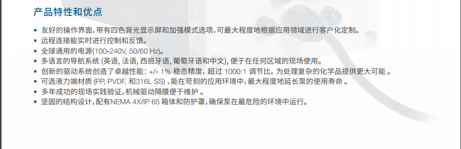 米顿罗机械驱动隔膜计量泵产品特性和优点